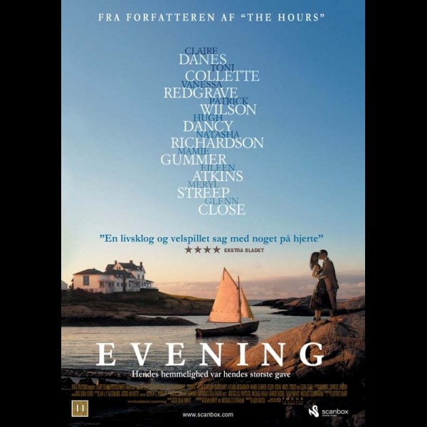 Ann (Vanessa Redgrave) ligger på dødslejet. Hendes to døtre Nina og Constance våger over hende, mens den stærke smertestillende medicin får hende til at glide ind og ud af bevidsthed. Hun taler usammenhængende og nævner flere personer og begivenheder, hendes døtre aldrig har hørt om. I flashbacks oplever vi en skæbnesvanger aften i 1950’erne, hvor Ann mødte og forelskede sig i den unge læge Harris. Men aftenen endte i tragedie, og de to, der syntes skabt for hinanden, måtte skilles, og Anns liv var ændret for altid. EVENING er en livsbekræftende og hjertevarm skildring af kvindeskæbner, der er viklet ind i hinanden. En fortælling om familie, ægte kærlighed og meningen med livet. Filmen byder på en stjerneparade af nogle af verdens bedste kvindelige skuespillere. Ud over altid imponerende Vanessa Redgrave byder EVENING på store præstationer fra Meryl Streep, Glenn Close, Claire Danes og Natasha Richardson (Vanessa Redgraves datter!).