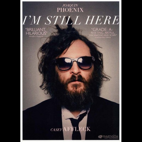 I filmen "I'm Still Here" dokumenterer Casey Affleck, Joaquin Phoenix' fortabte år, og filmen er en ekvilibristisk leg med - og intelligent kommentar til - mediernes meningsløse interesse for berømtheder. I 2008 proklamerede Joaquin Phoenix, at han trak sig tilbage fra skuespillet for at satse på en musikkarriere som rapper. Joaquin Phoenix var på daværende tidspunkt på toppen af sin karriere som skuespiller, så det kom som en overraskelse for alle - både publikum, medier og filmbranche. Det blev startskuddet til to års skandaleombrust opførsel i og overfor medierne og filmen er en spydig kommentar til og afsløring af mediernes medvirken i stjernens selvdestruktive adfærd og hermed berømmelsens bagside.